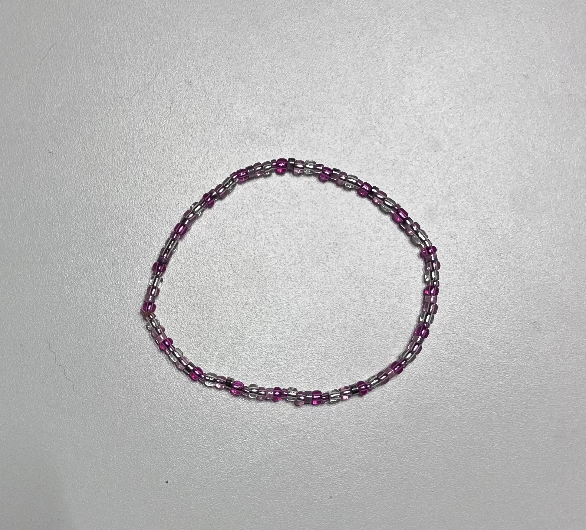 Adorn your wrist with this heartfelt and exquisite, 2-3mm beaded bracelet. The beautiful glass beads are intricately put together to create a stunning jewelry accessory that exudes elegance and charm. These heartfelt bracelets keep the special memory alive and close to you as you wear it. Measures 7 inches and fits most wrists. This handmade bracelet is a one-of-a-kind piece that’s sure to turn heads. The thought-inspired design makes it a timeless addition to any jewelry collection. This beaded bracelet is a true reflection of love, beauty and craftsmanship. (Tidbit-I made one for me with only 2mm beads back in April, 2024 and I put it on (roll it over hand) most mornings and take it off every night and still going strong!)