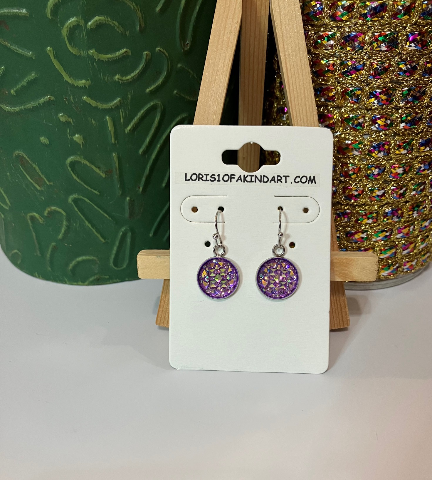 Amethyst Diamond Cut Faux Druzy Dangle Earrings