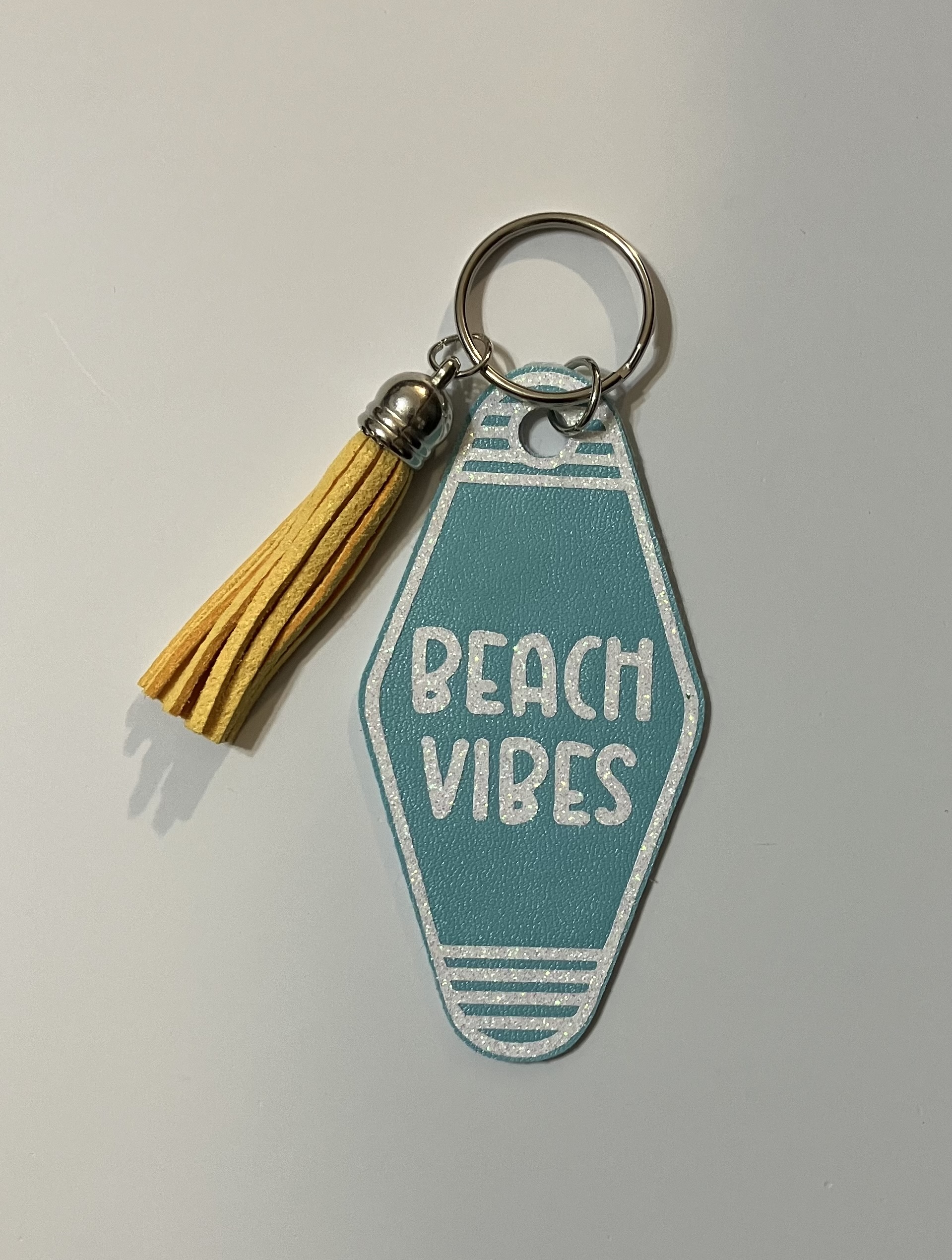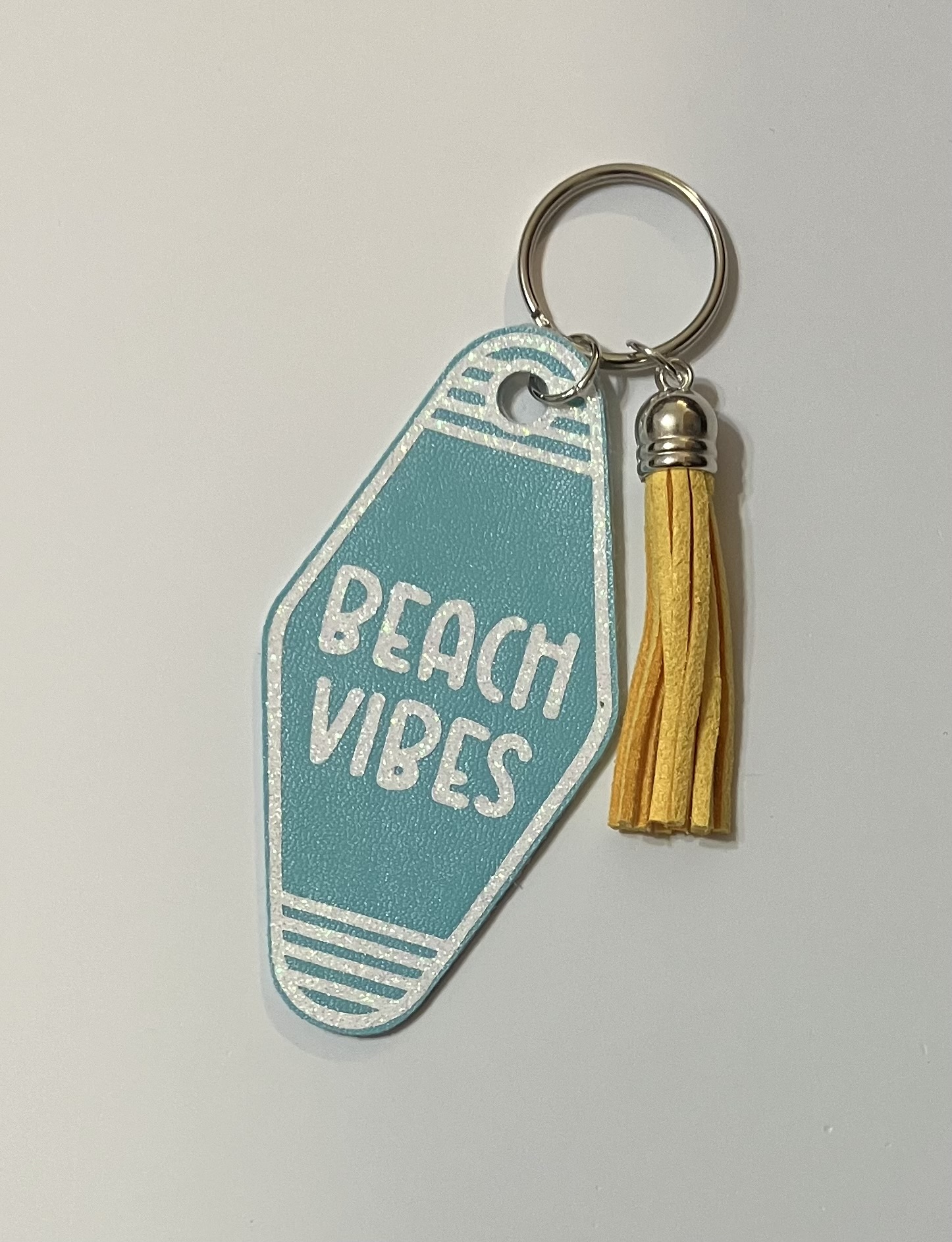 Beach Vibes Motel Key Faux Leather Purse Charm/Keychain with Sun-Shaded Tassel, 1OAKG