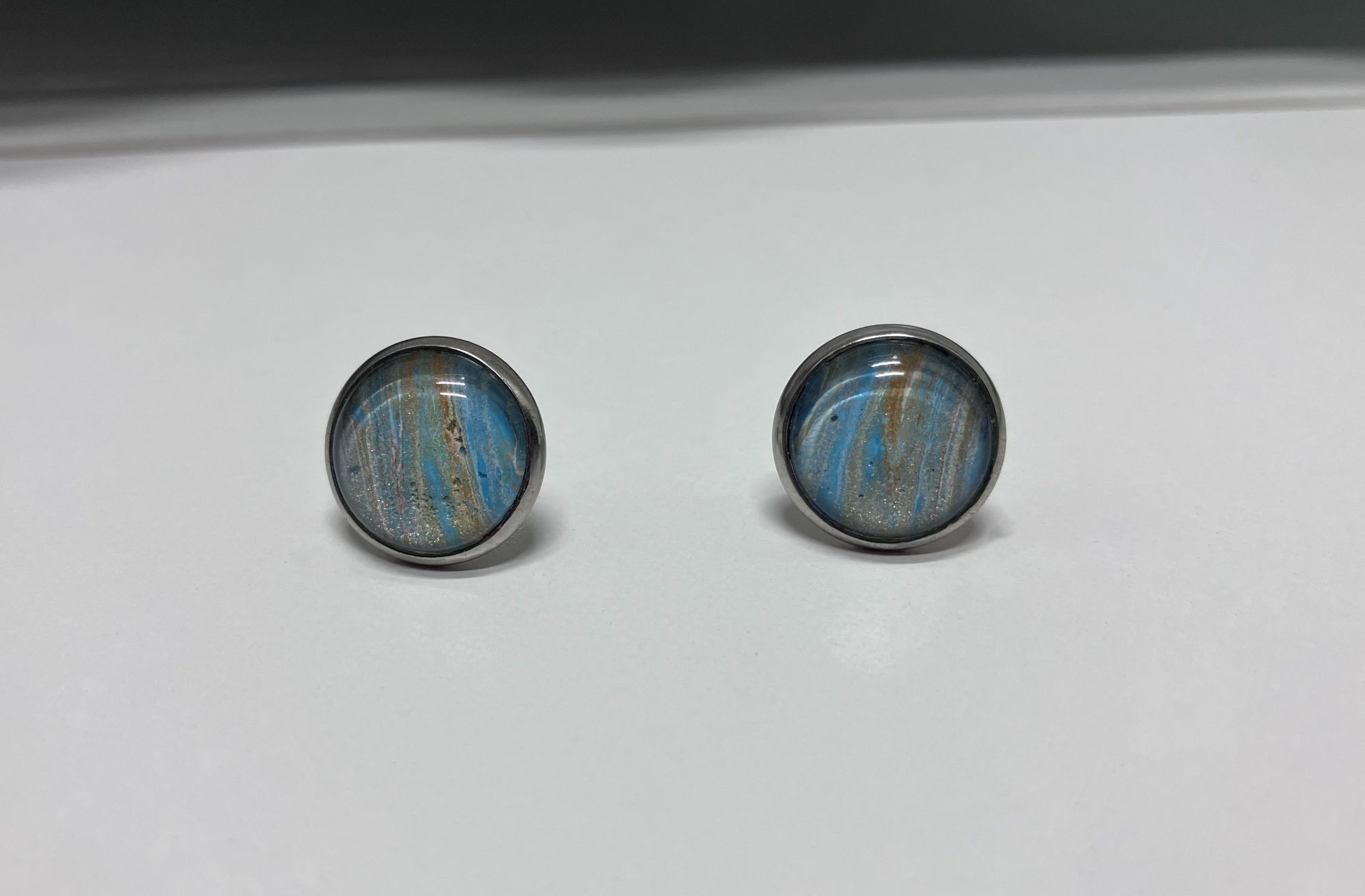 Beachy Fluid Art in Silver Post Studs, 1OAKG