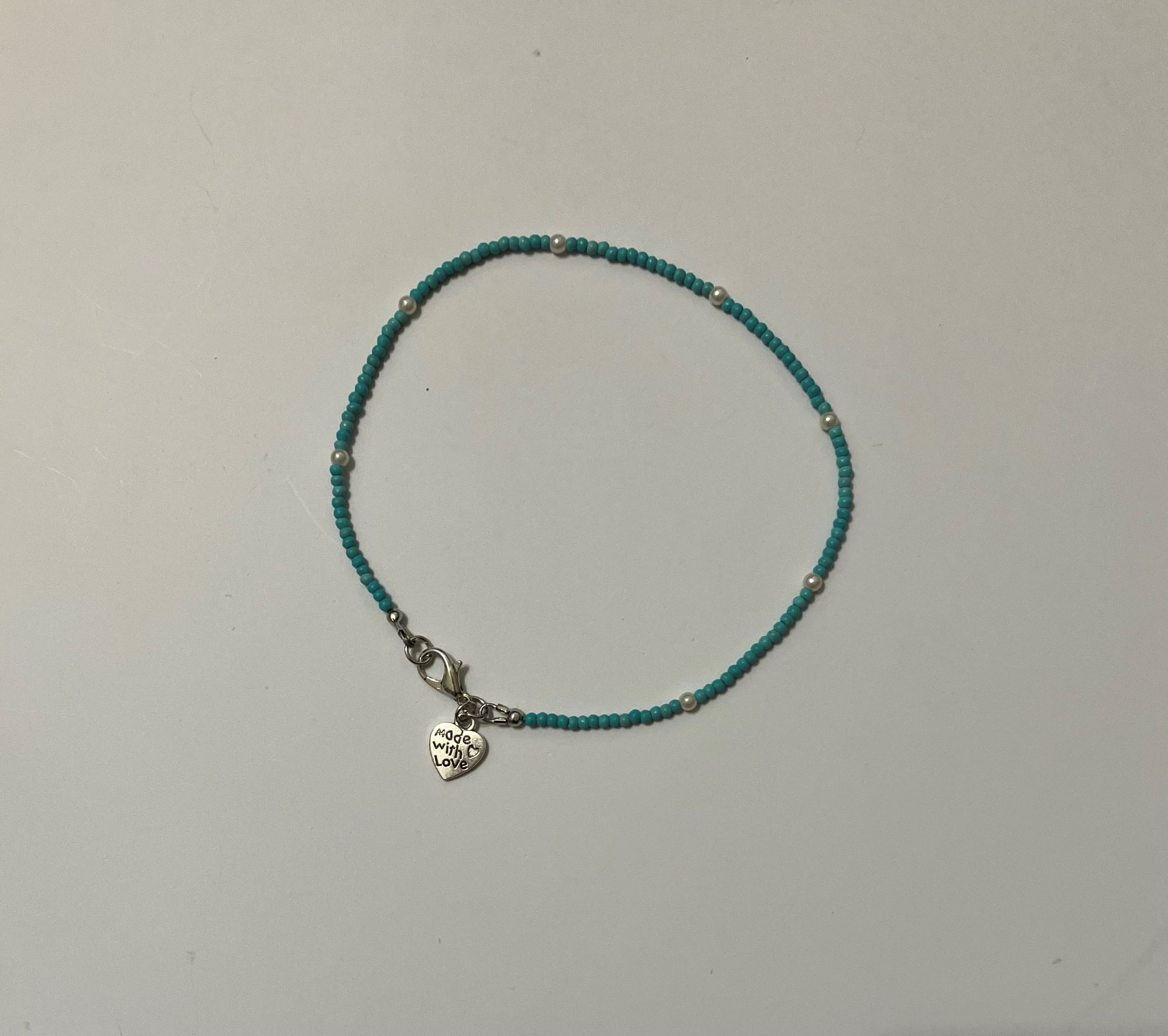 - Gemstone: 2mm turquoise & 3mm pearl glass beads