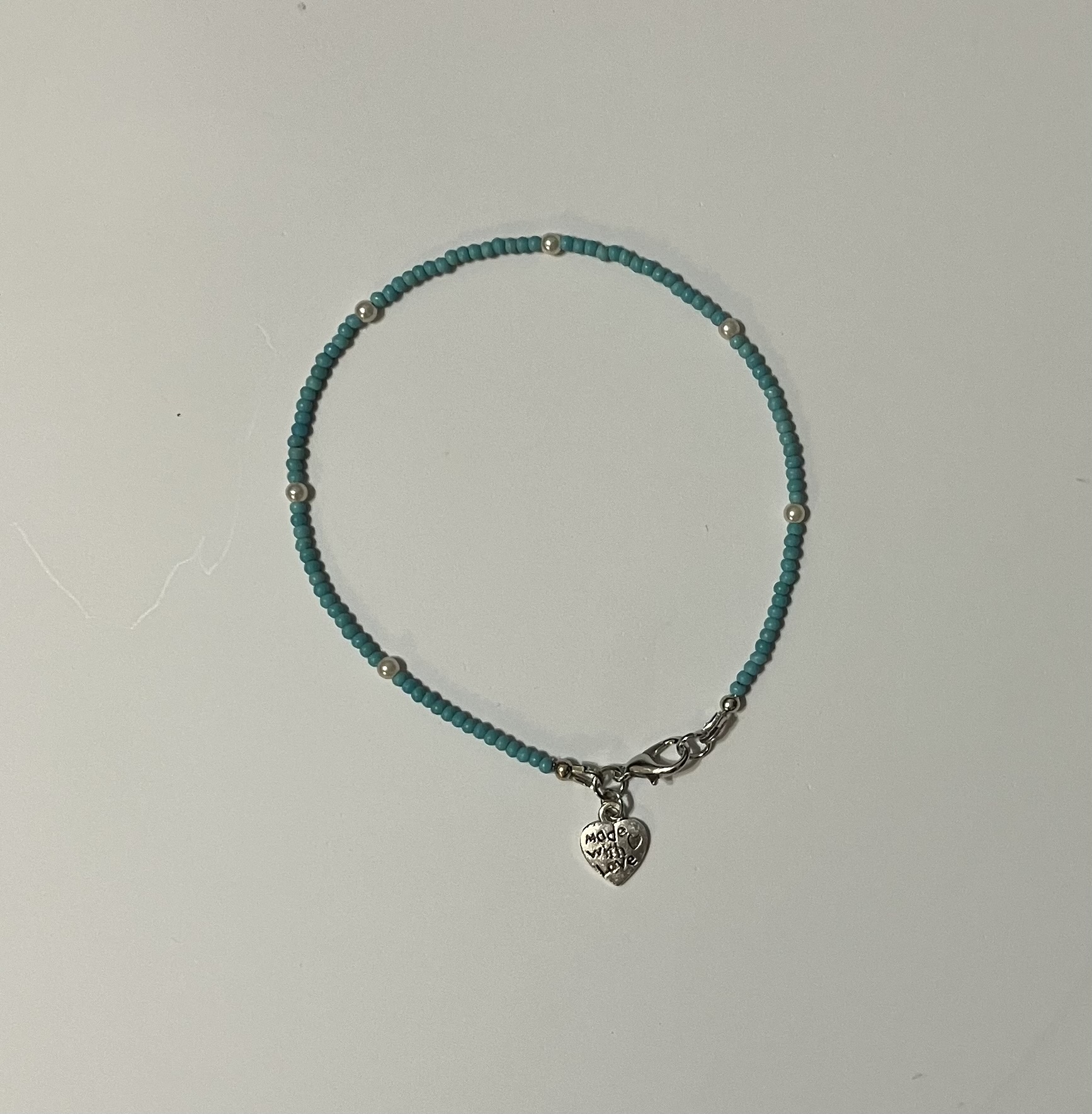 - Gemstone: 2mm turquoise & 3mm pearl glass beads