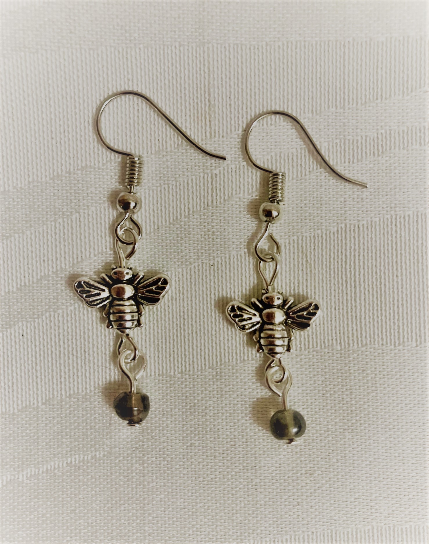 Bee and Smoky Bead Dangling Earrings
