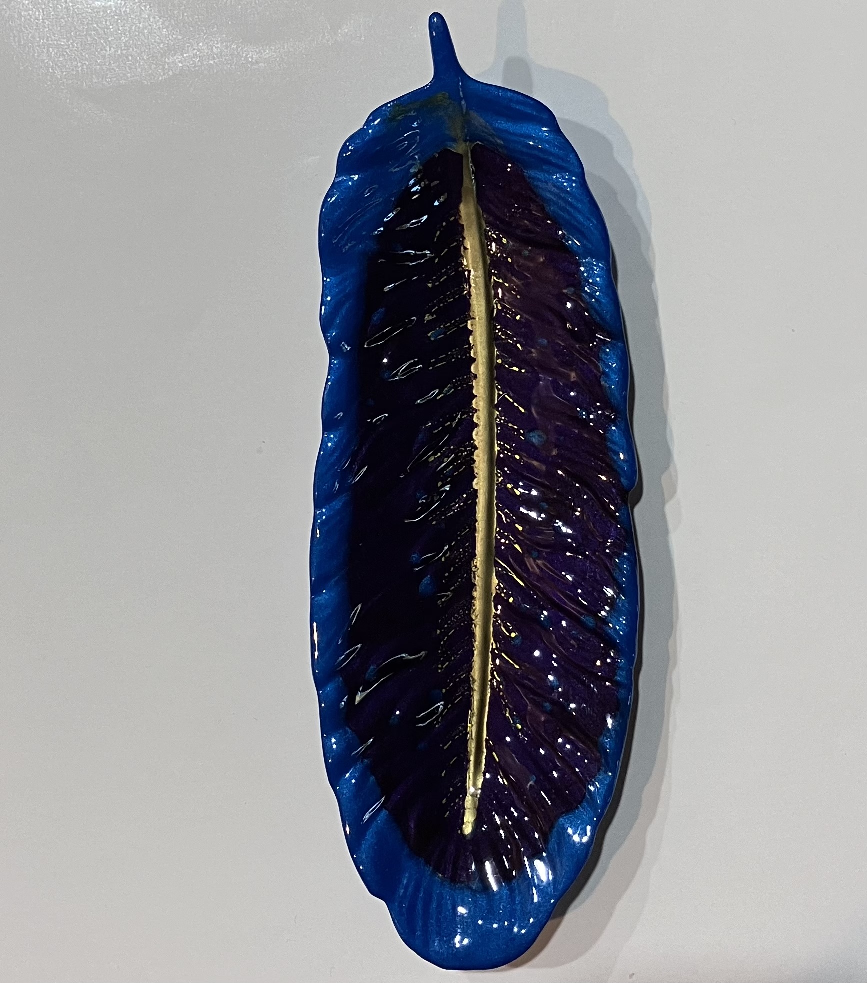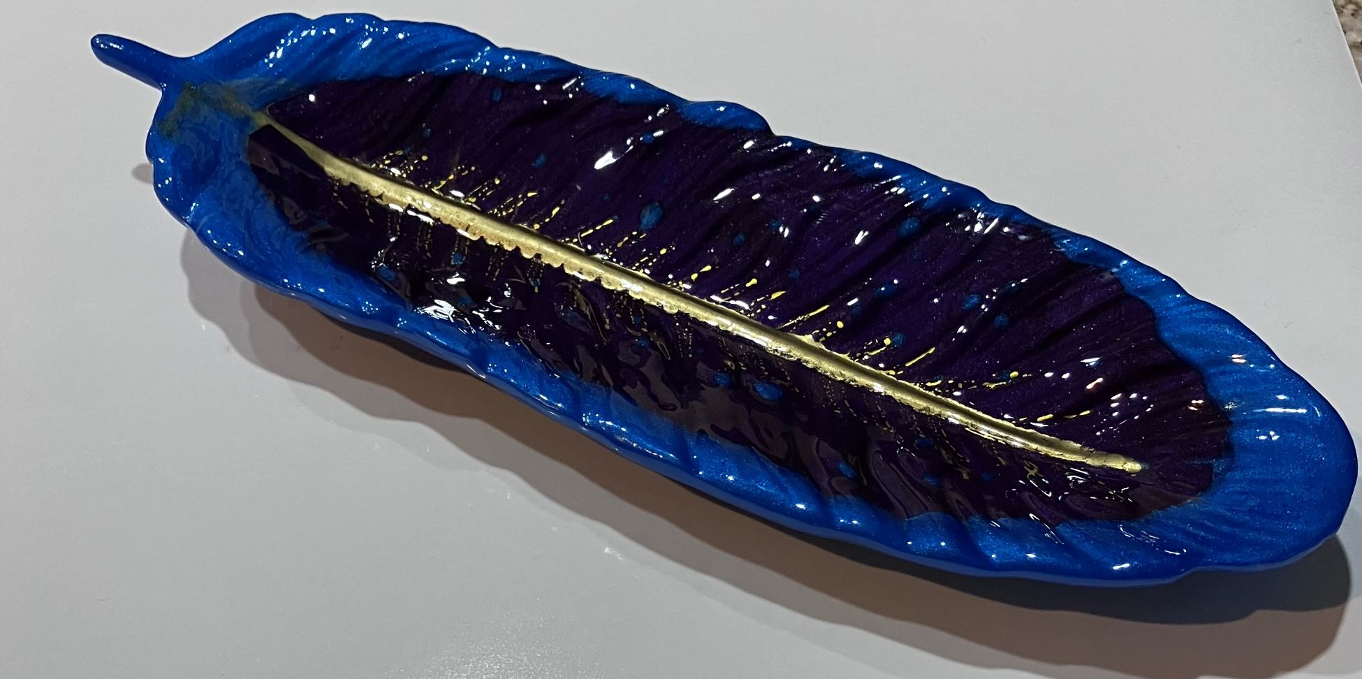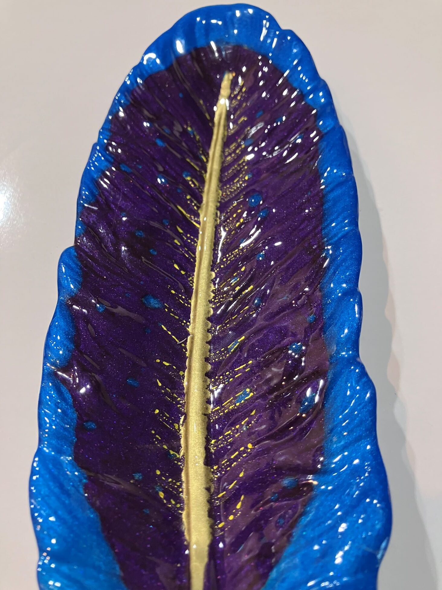Blue, Purple and Gold Resin Feather for Keys/Jewelry/Candy Dish/Trinket Tray/Spoon Rest, 1OAKG