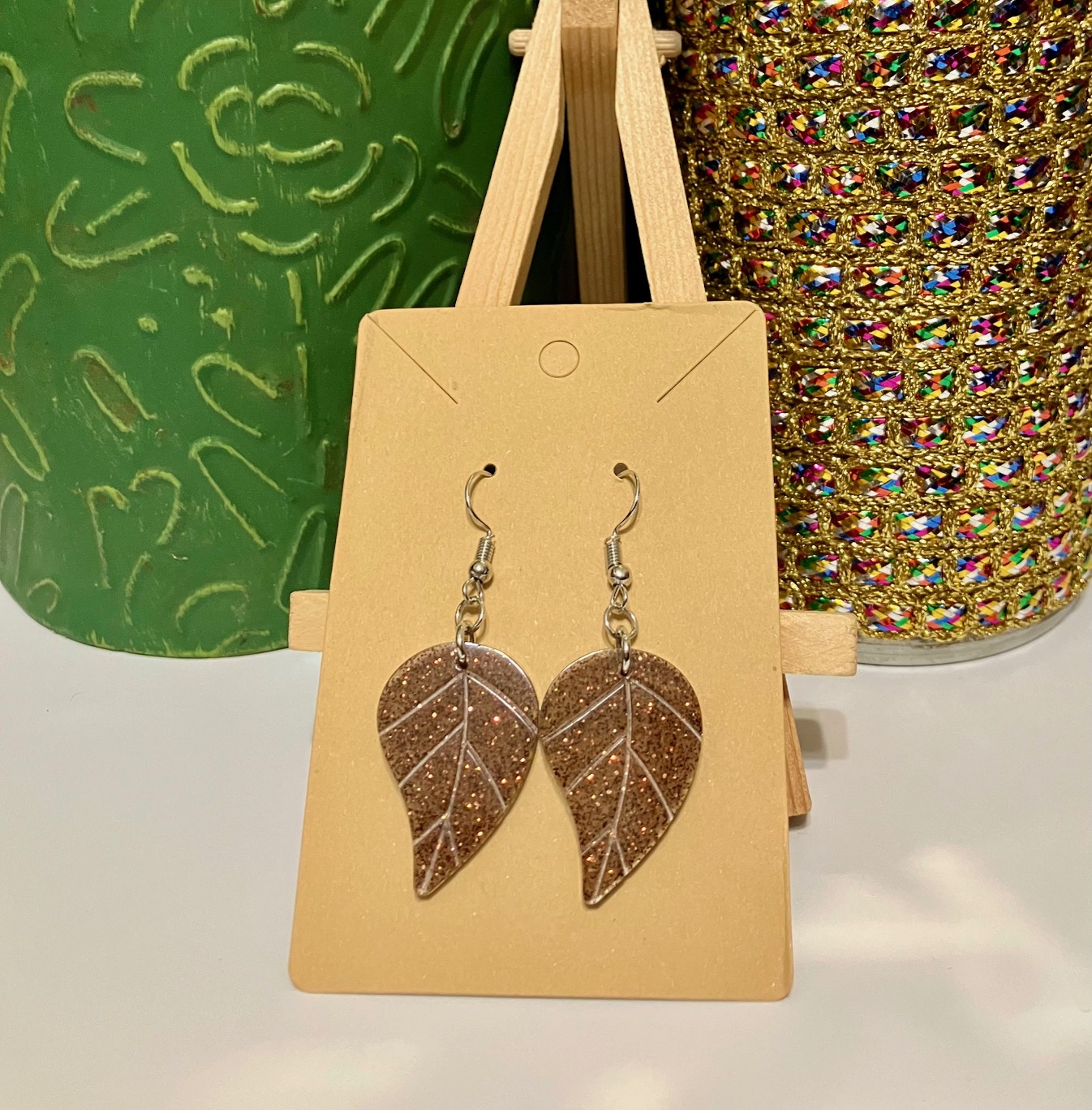 Brown Resin with Copper Glitter Dangling Leaf Earrings, 1OAKG