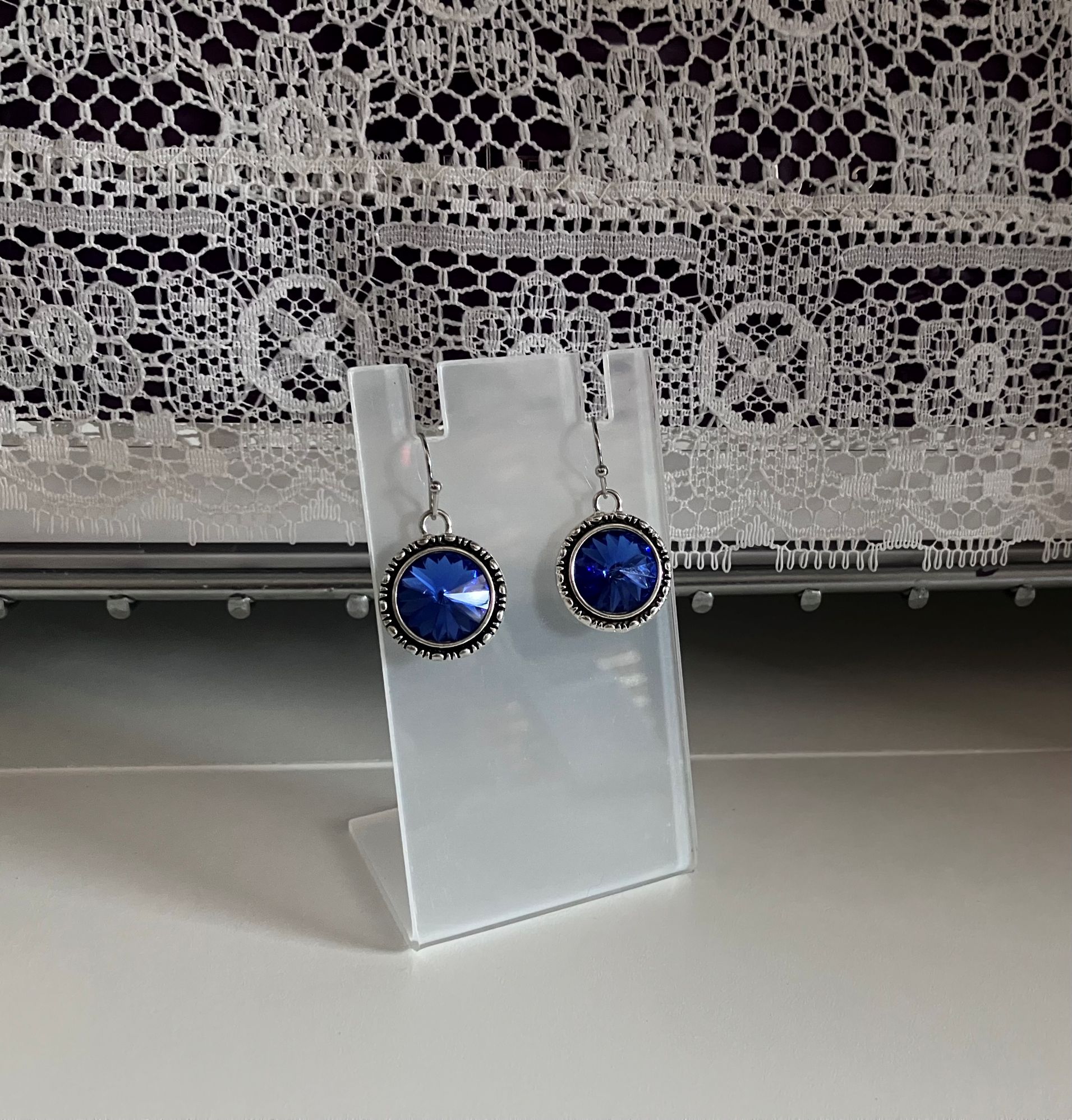 Chaton, Swarovski Crystal Passions Sapphire Rivoli Dangle Earrings