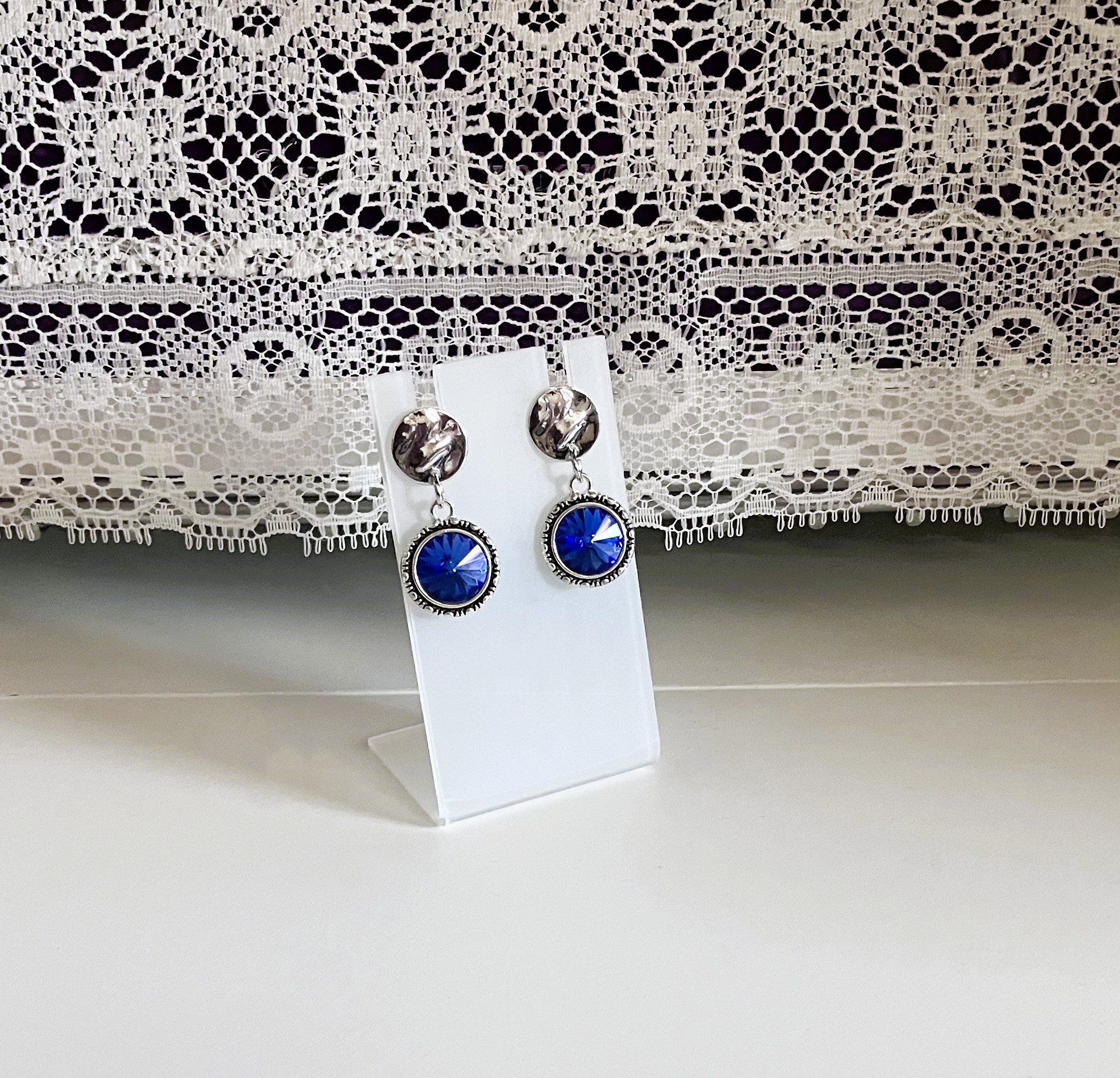 Chaton, Swarovski Crystal Passions Sapphire Rivoli Post Dangle Earrings
