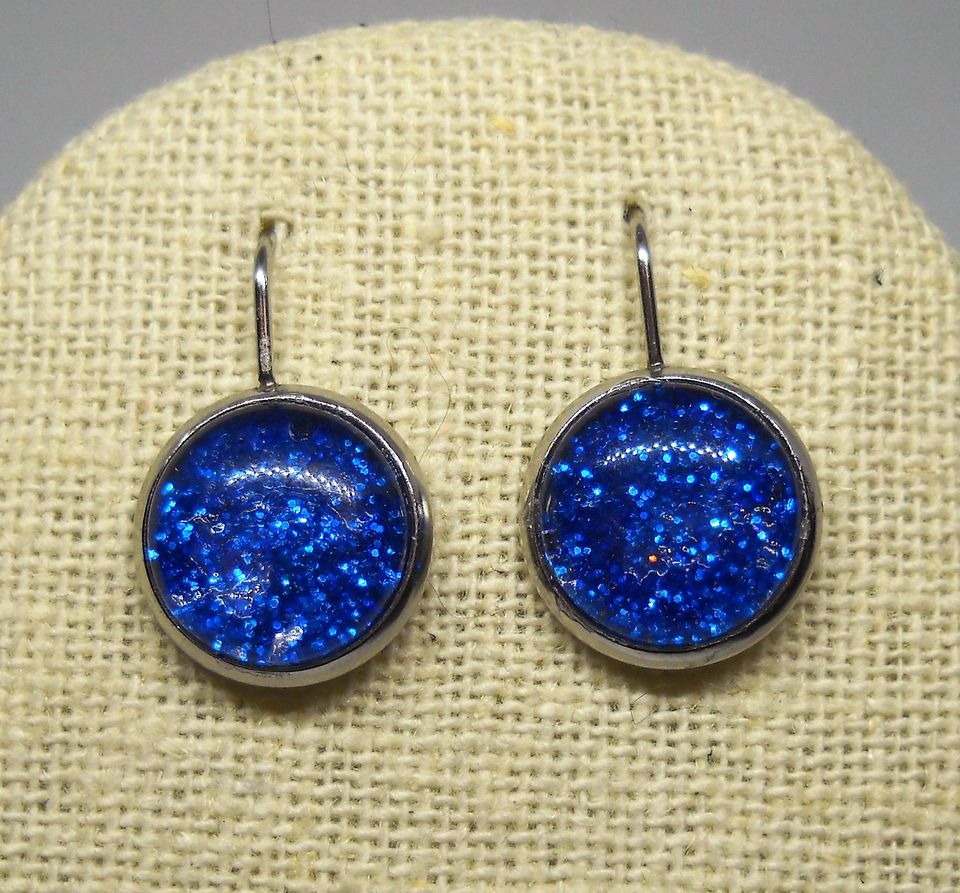 Cobalt Blue Glitter Wire Hook Earrings, 1OAKG