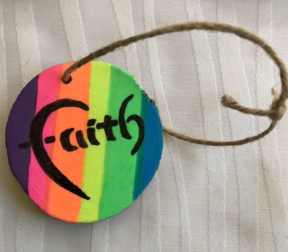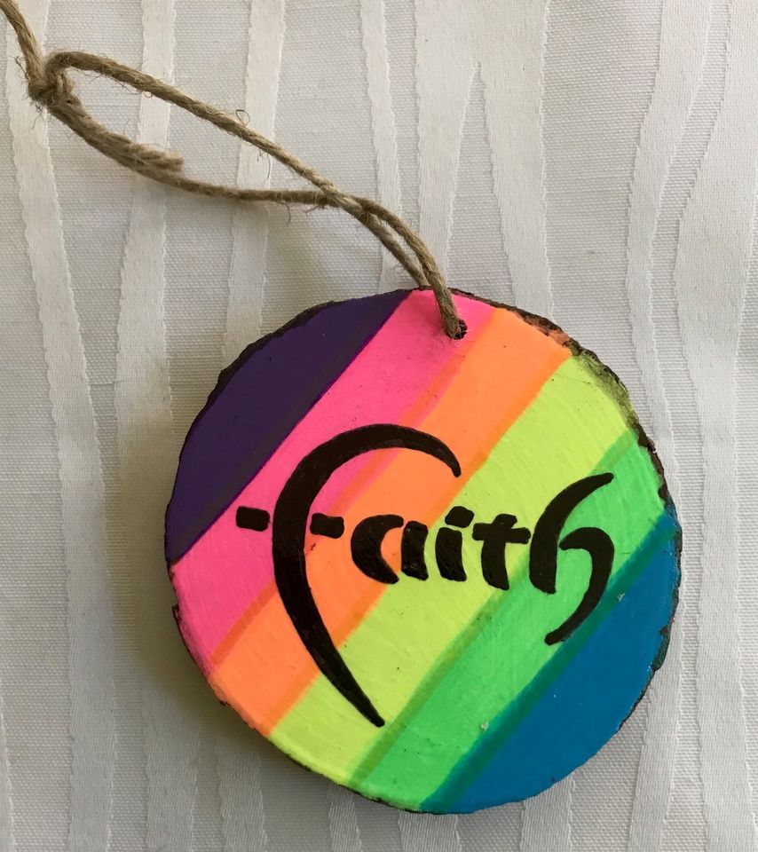 Colorful Faith and a Cross with Ruby Rhinestone Wood Slice Ornament, 1OAKG