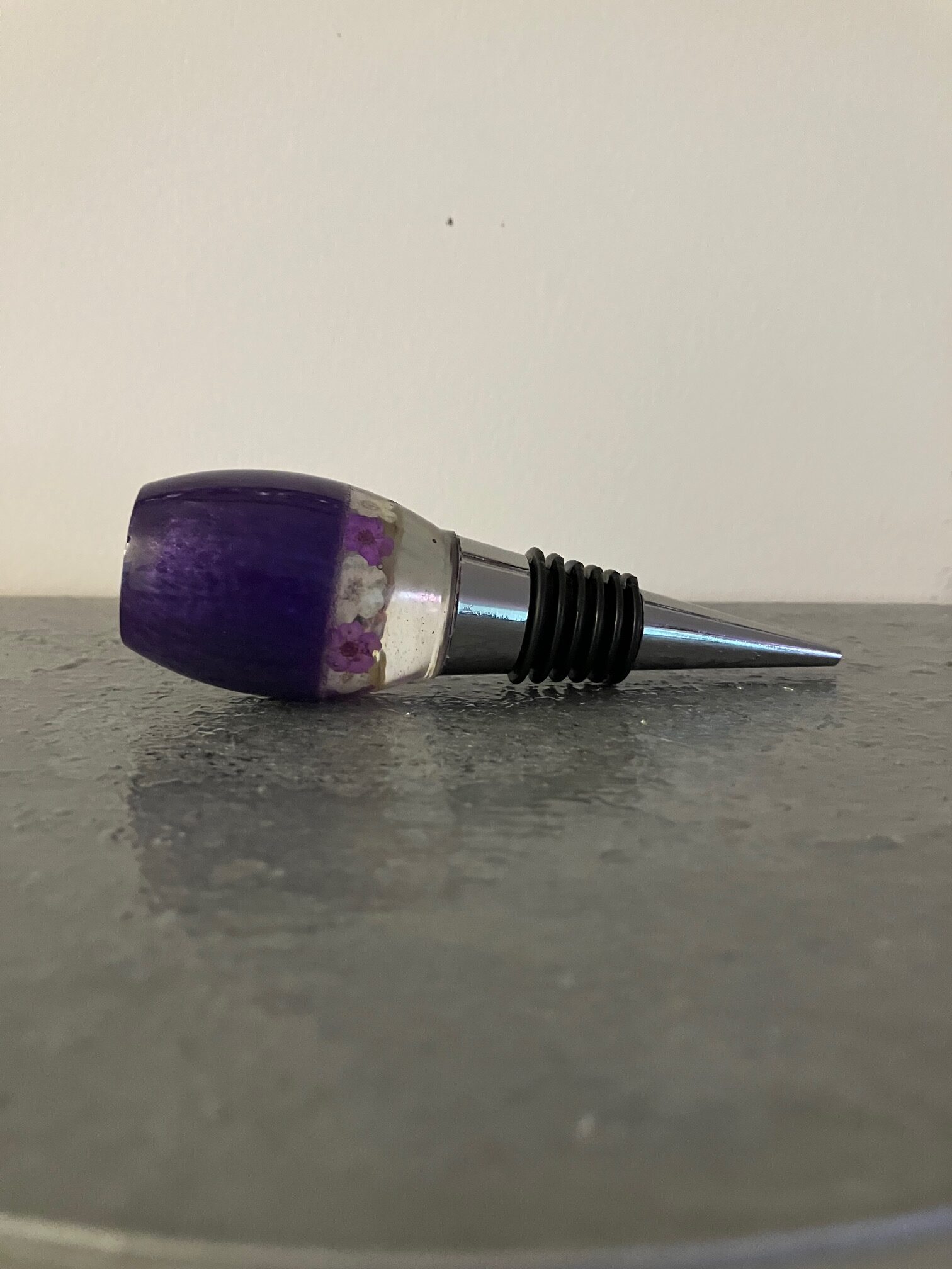 Dark Purple Resin Wine Stopper with a Ring of Dried Flowers, 1OAKG