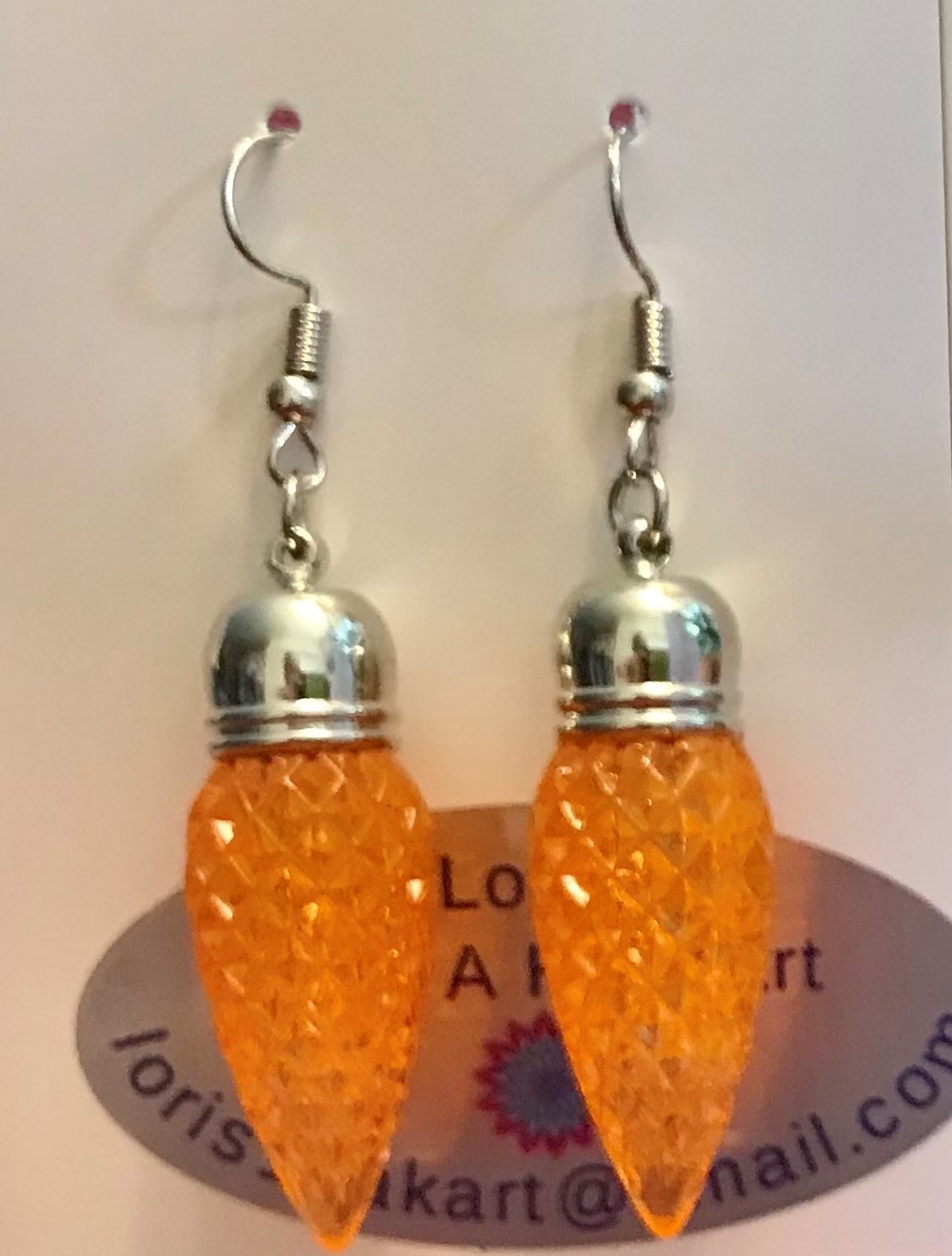 Add a touch of elegance to your outfit with these beautiful dangle earrings by loris1ofakindart. The faceted orange sheath design with a cone shape is perfect for any occasion, whether it’s Christmas or just a regular day. The earrings are made with high-quality acrylic material and stainless steel metal, brass silver tone ensuring durability and long-lasting wear. These handmade earrings feature a French hook and have an item length of 2.5 inches. They are designed for the lobe ear area and come in a pair. These earrings are not signed or vintage and can be personalized if desired. They are a great addition to any fashion jewelry collection and are made in the United States.