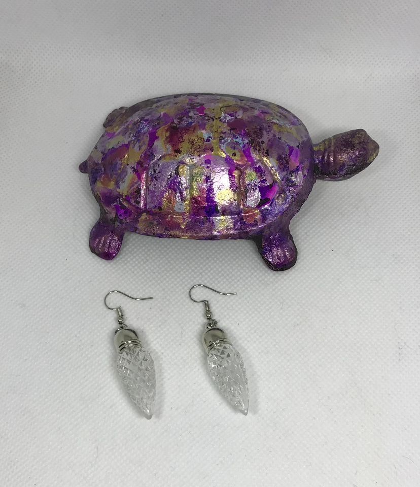 Add a touch of elegance to your outfit with these beautiful dangle earrings by loris1ofakindart. The faceted white sheath design with a cone shape is perfect for any occasion, whether it’s Christmas or just a regular day. The earrings are made with high-quality acrylic material and stainless steel metal, brass silver tone ensuring durability and long-lasting wear. These handmade earrings feature a French hook and have an item length of 2.5 inches. They are designed for the lobe ear area and come in a pair. These earrings are not signed or vintage and can be personalized if desired. They are a great addition to any fashion jewelry collection and are made in the United States.