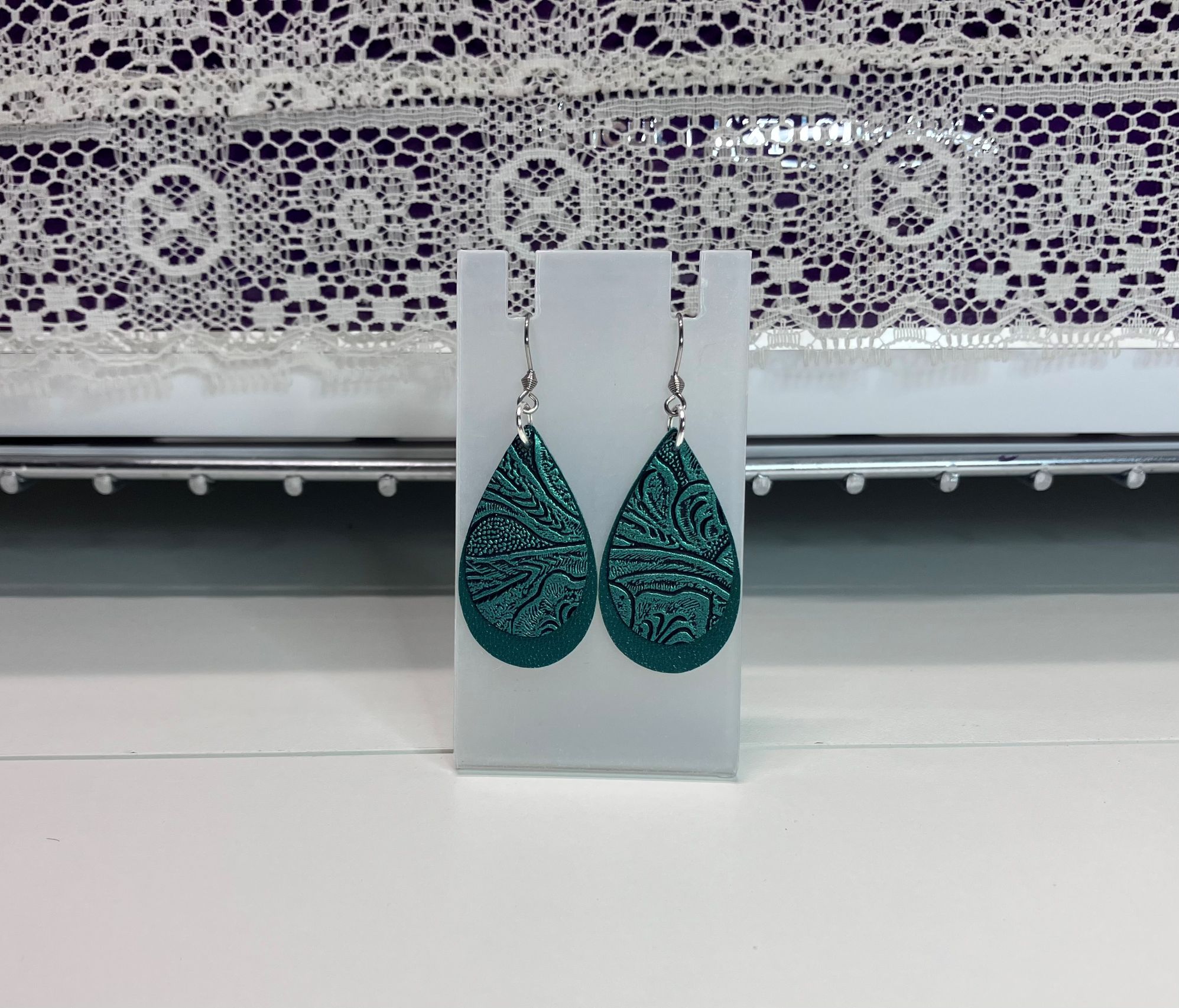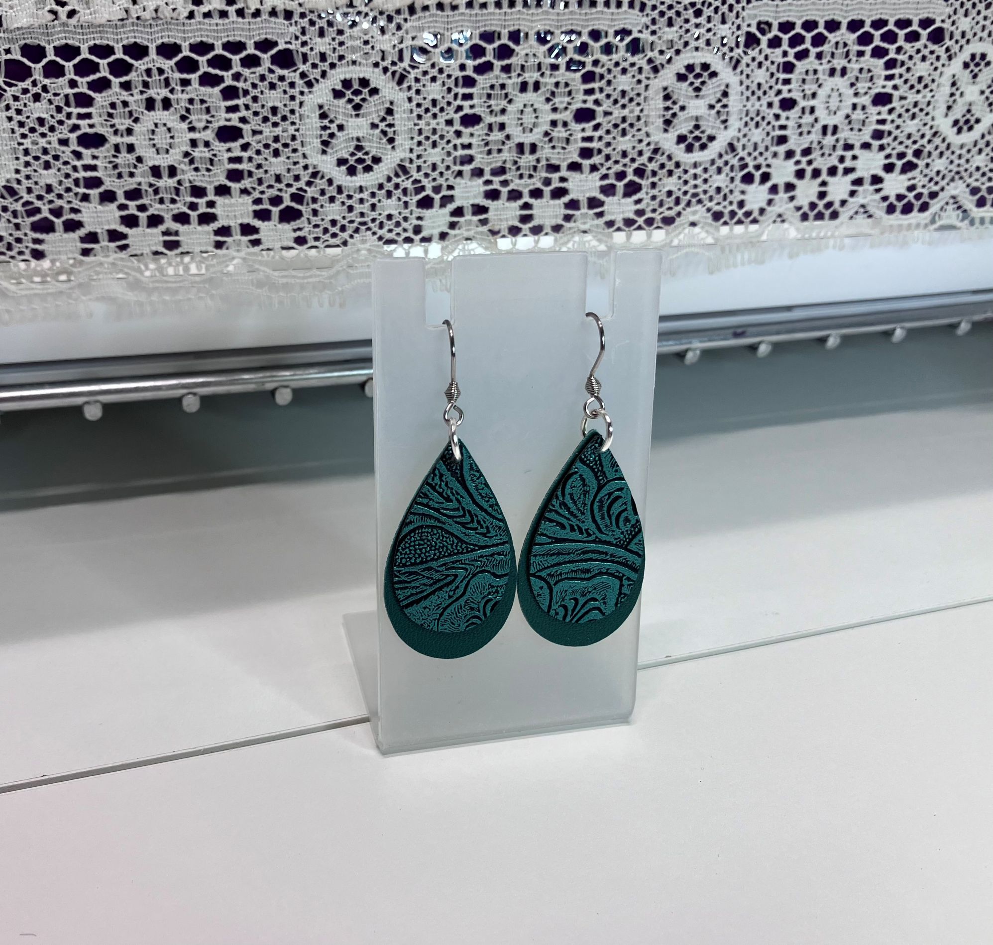 Add a touch of bohemian style to your outfit with these handmade teardrop-shaped earrings. The earrings feature a double-layered design with faux leather material giving them a unique and stylish look. The French hooks are made of stainless steel and come with a silicone back closure, making them comfortable to wear all day long. These dangle/drop earrings are lightweight and perfect for any occasion. They are 2.25″ in length by .75” in width. This pair of earrings would be a great addition to your jewelry collection.