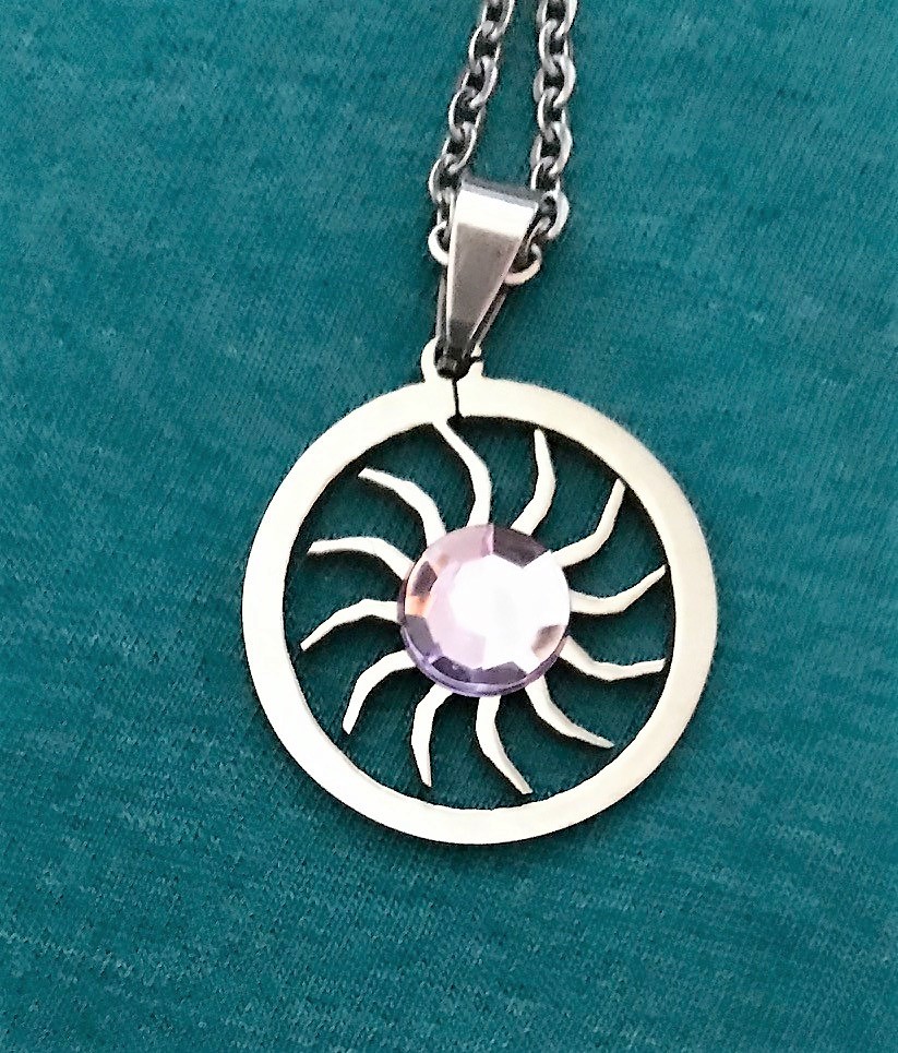 Lavender Rhinestone Sun Pendant on a Silver Chain Necklace