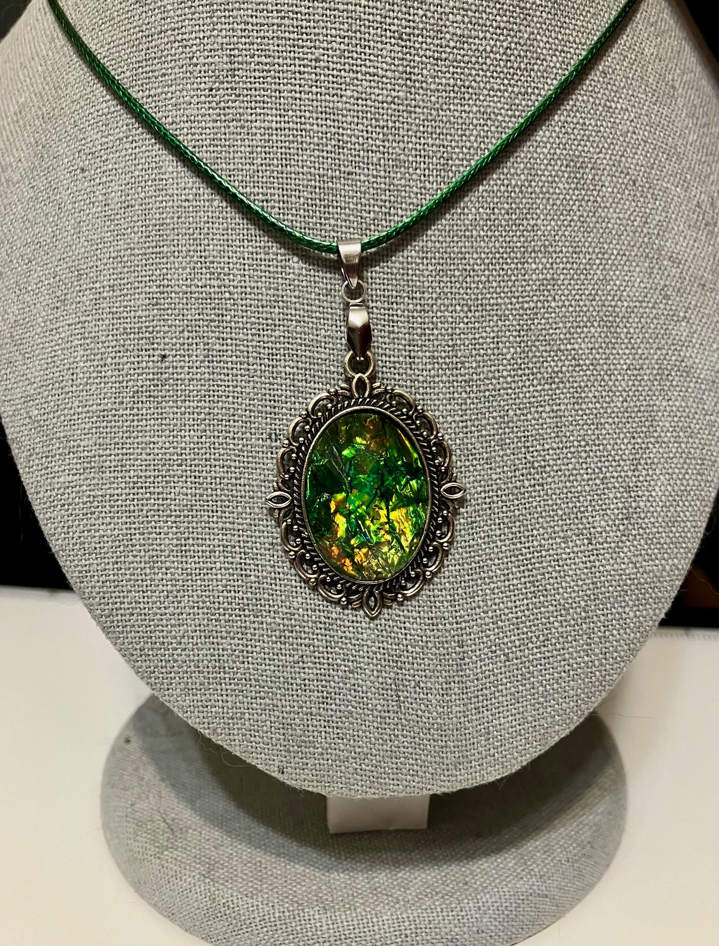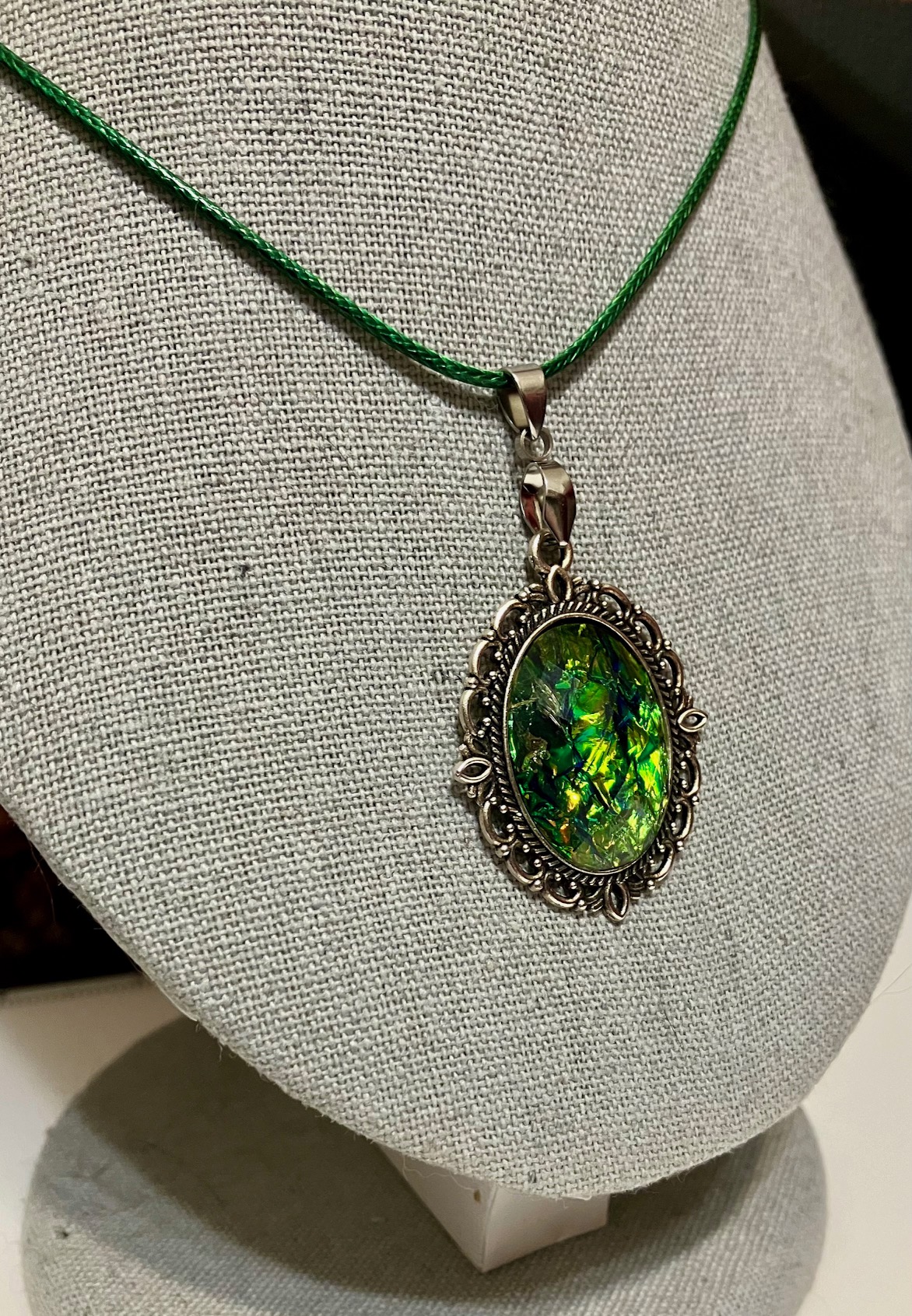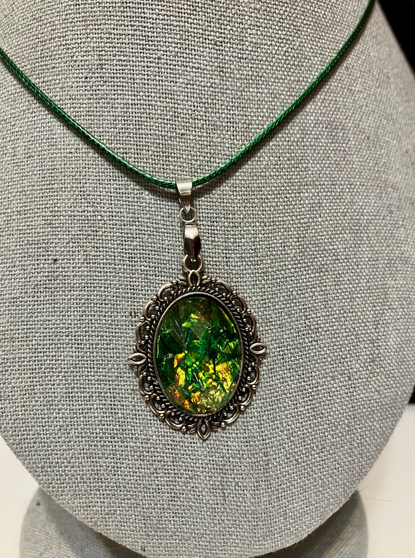 Opalescent Green & Multicolor Pendant Necklace 1, 1OAKG