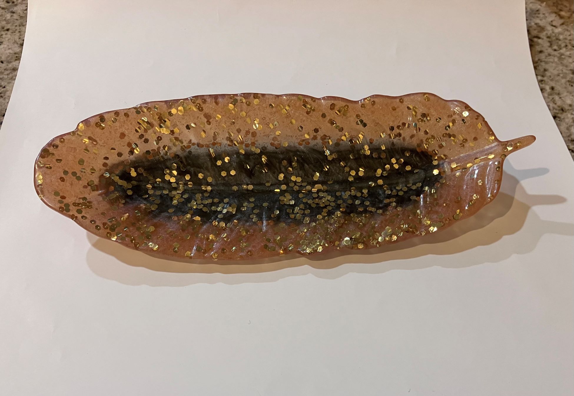 This resin feather shaped tray makes a perfect jewelry tray, candy dish, spoon rest, or meaningful decoration for your bookshelf, desk, kitchen counter or coffee table.
