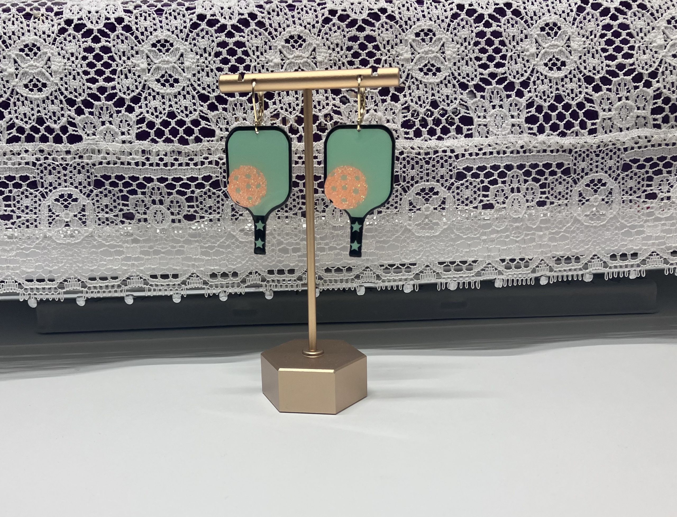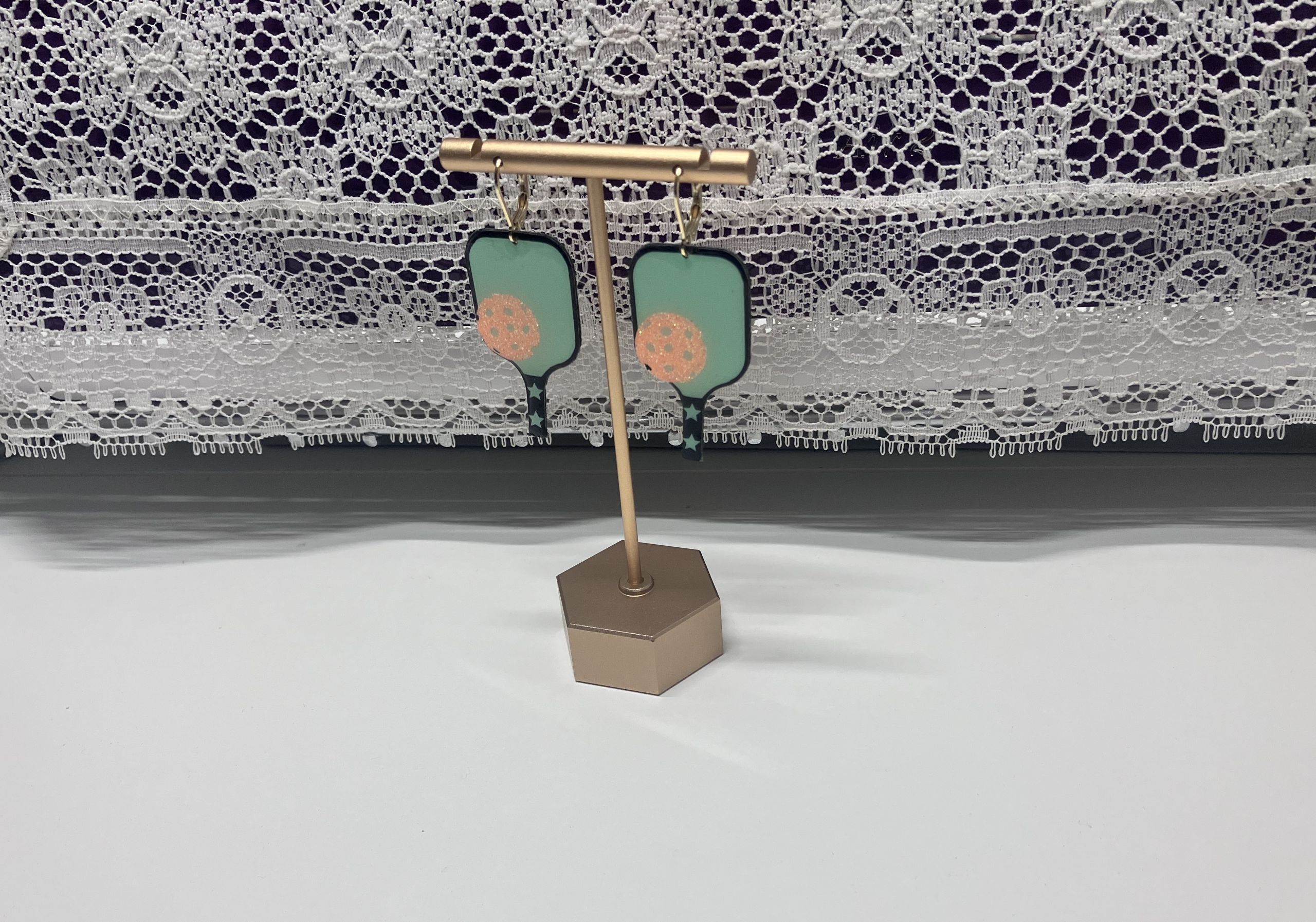 Pickle-ball Paddle and Ball Dangle Earrings#3 – 1OAKG