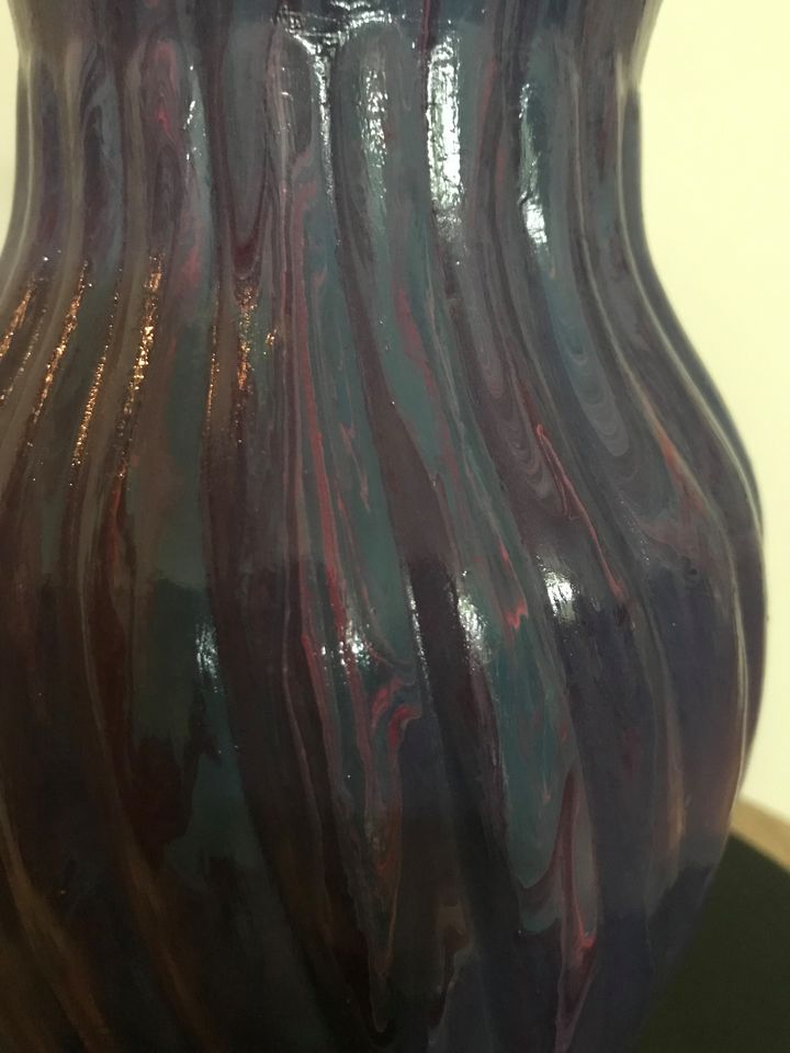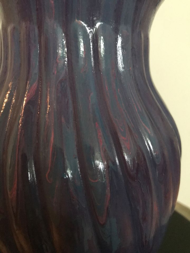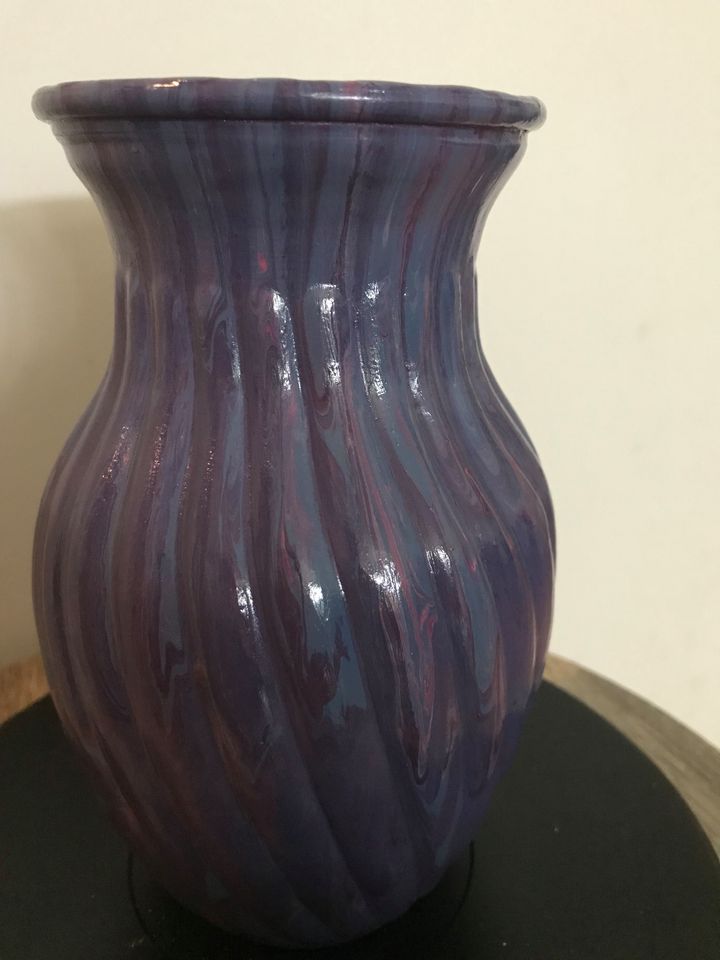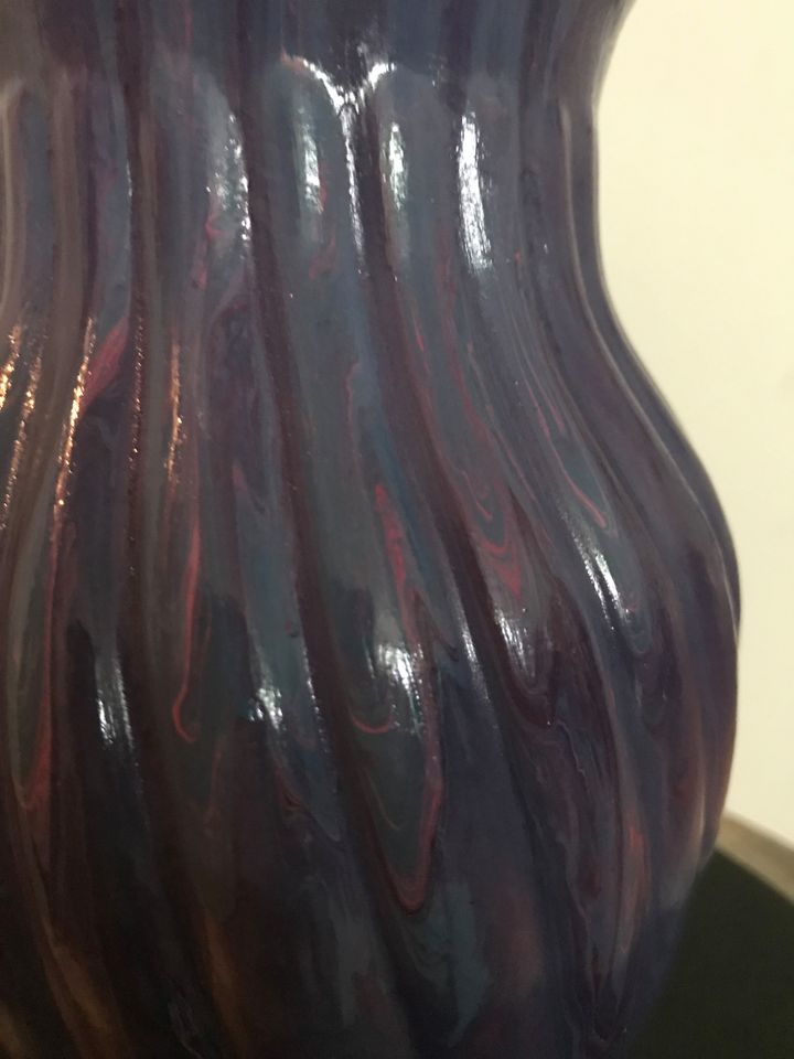 - Materials: glass vase, acrylic paints (purple, blue, pink), 2 coats of sealer