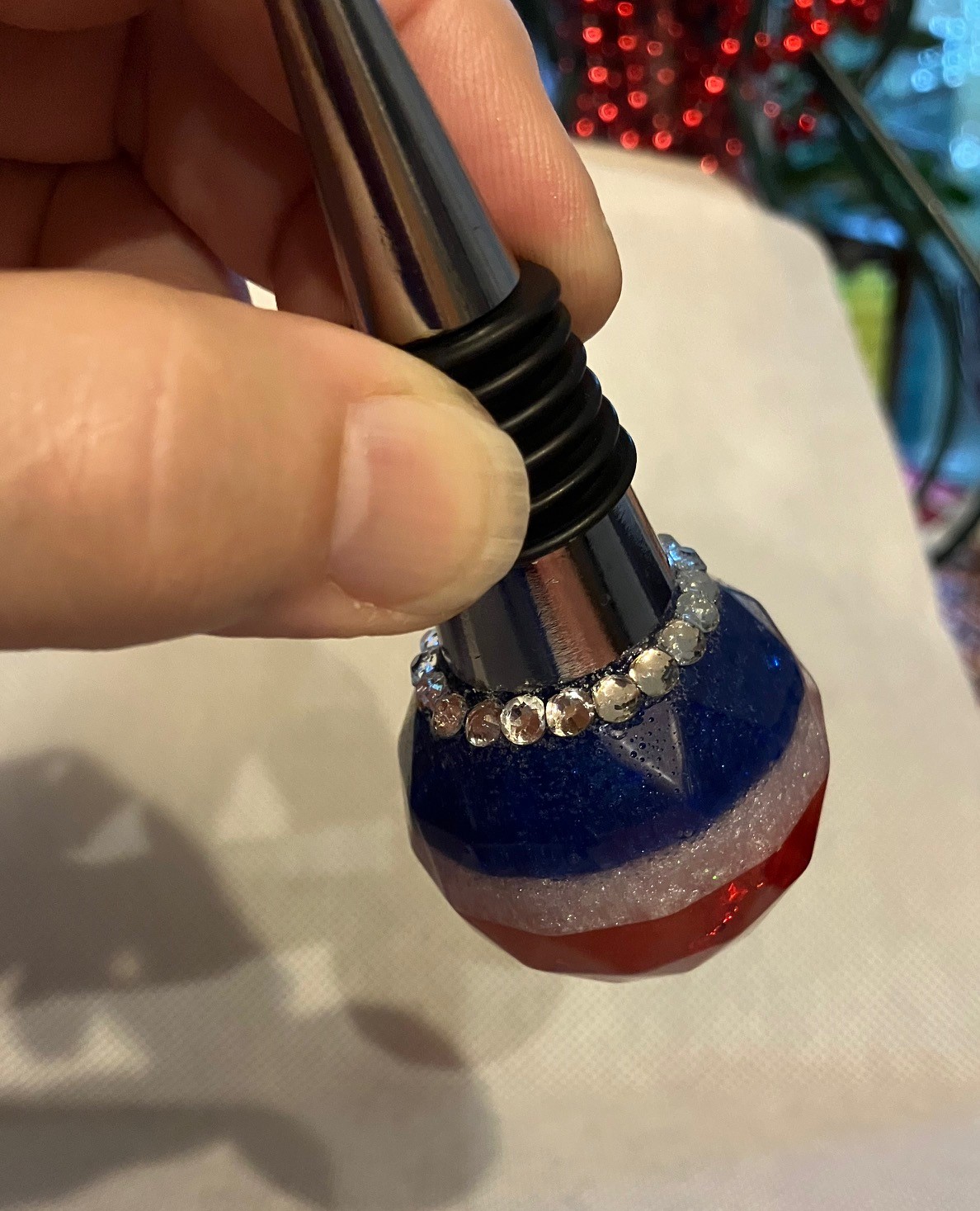Red, White & Blue Resin Wine Stopper with More Bling, 1OAKG