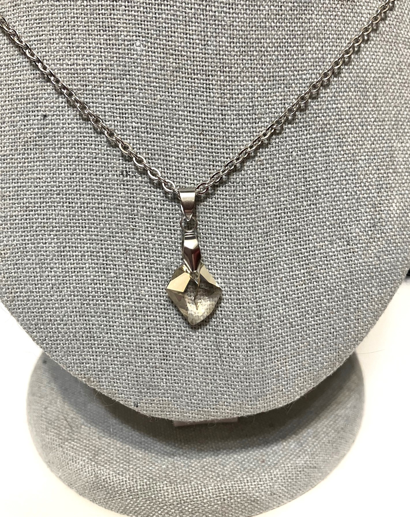 This stunning pendant necklace from Loris1ofakindart is sure to catch everyone’s eye. The Galactic Vertical crystal is perfectly faceted to reflect the light in all directions. The surgical steel metal parts and stainless steel chain are durable and comfortable to wear, while the lobster closure ensures a secure fit. With a necklace length of 26 inches, it’s perfect for layering or wearing on its own. The clear crystal and focal setting style make it a versatile accessory that can be dressed up or down. Handcrafted in the United States, this unique piece from Swarovski Crystal Passions® is a must-have addition to any jewelry collection.