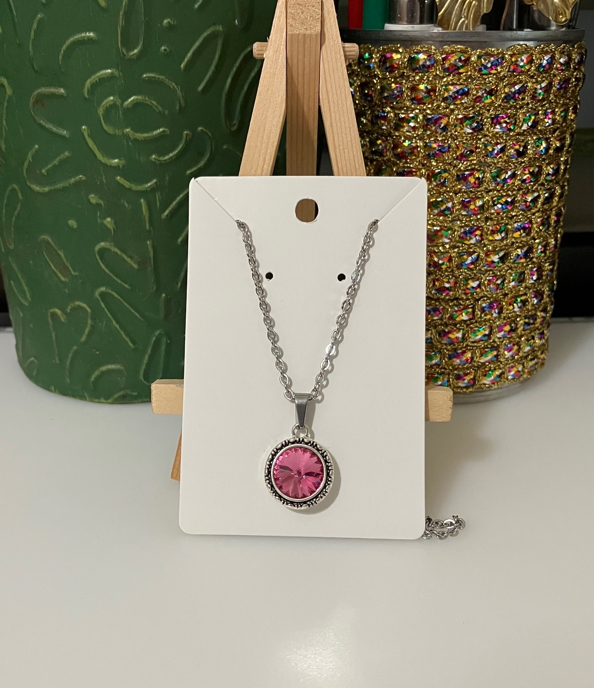 The Swarovski rose crystal in this rope setting pendant on this cable link stainless steel chain is so stunning.