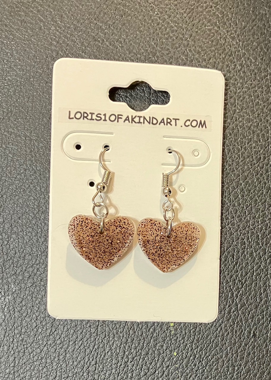 Translucent Brown Resin with Copper Glitter Filled-Heart Dangle Earrings, 1OAKG